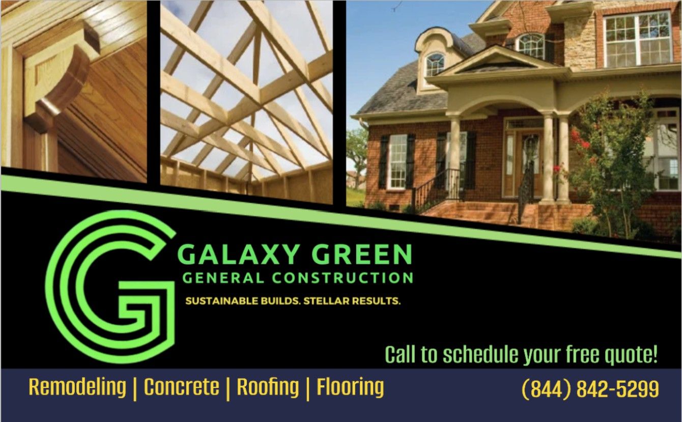 Galaxy Green General Construction is a family‑owned general contractor based in the DFW area. We provide residential and light commercial construction, remodeling, roofing, and electrical services. Our company emphasizes in sustainable practices, quality craftsmanship, transparent communication and personalized service, managing projects from concept to completion with integrity and professional attention to detail.